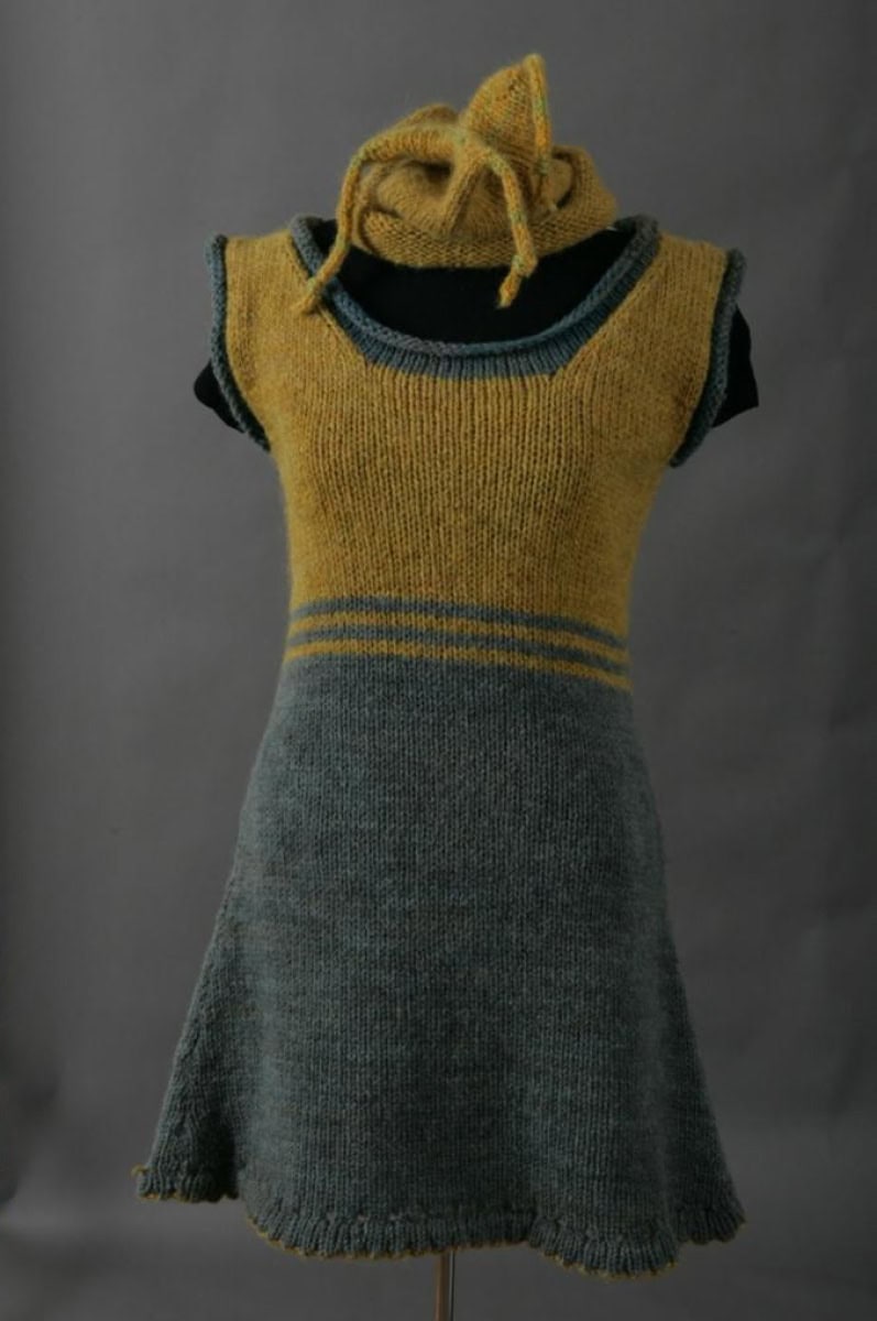 This favorite is for the “girl” of any age. An accent color can be used as a “peekaboo” under the picot hem. Single color, or simple stripe belt, or color blocked as you see here, this fun layer takes your shape and fits your life. Mine hits at mid calf, so I can sit in the snow and still stay warm, or keep from showing off my bum. Worn with pants, or tights and boots, it goes everywhere: Yoga, skiing, curling, out to the barn or to supper… thank goodness it’s machine washable! Can also do it as a skirt, without the top, and make an elastic waist or i-cord tie.